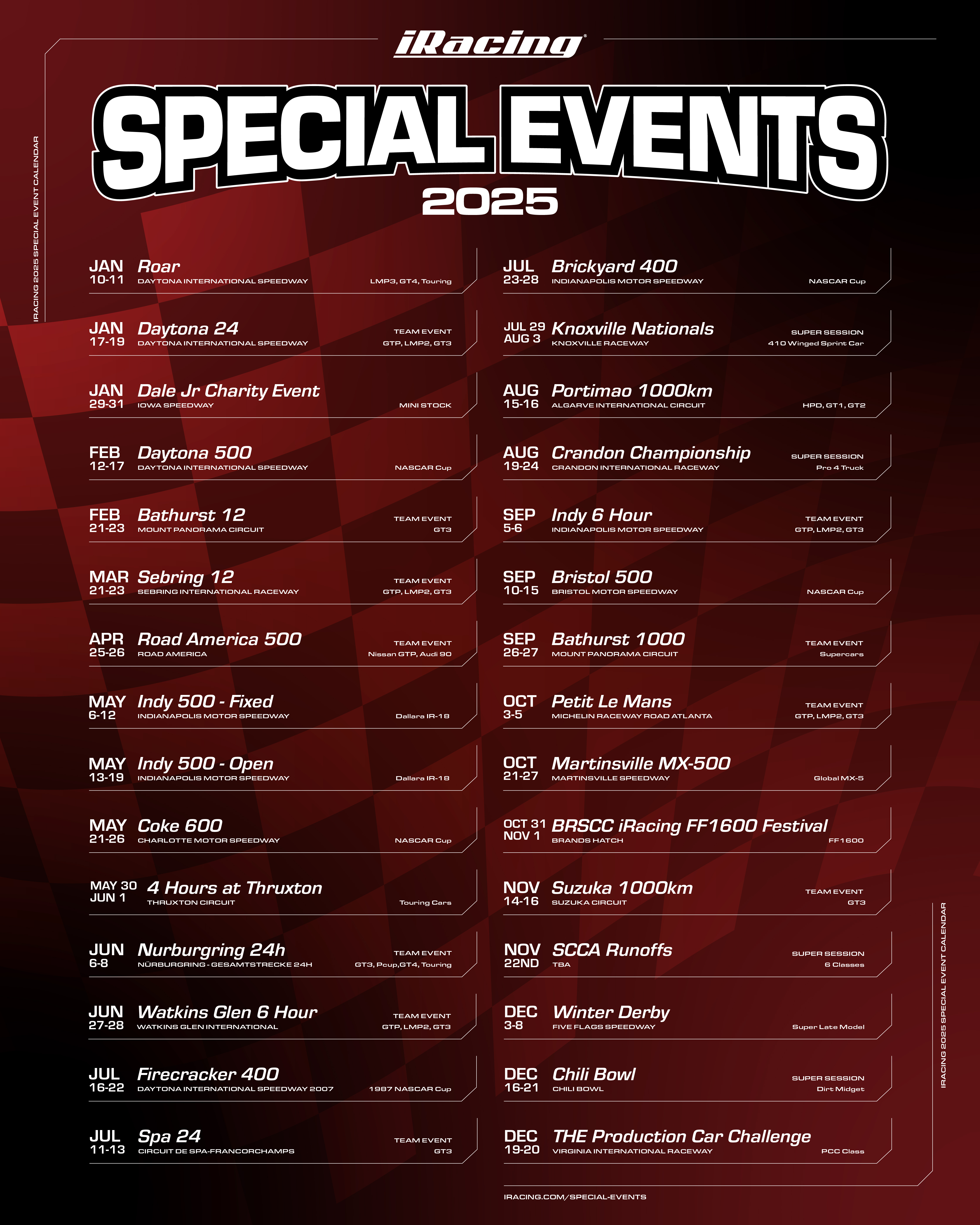 The iRacing ROAR is inspired by the real-world Roar Before the Rolex 24 at Daytona International Speedway. Back by popular demand, this event kicks off the 2025 iRacing Special Event schedule.