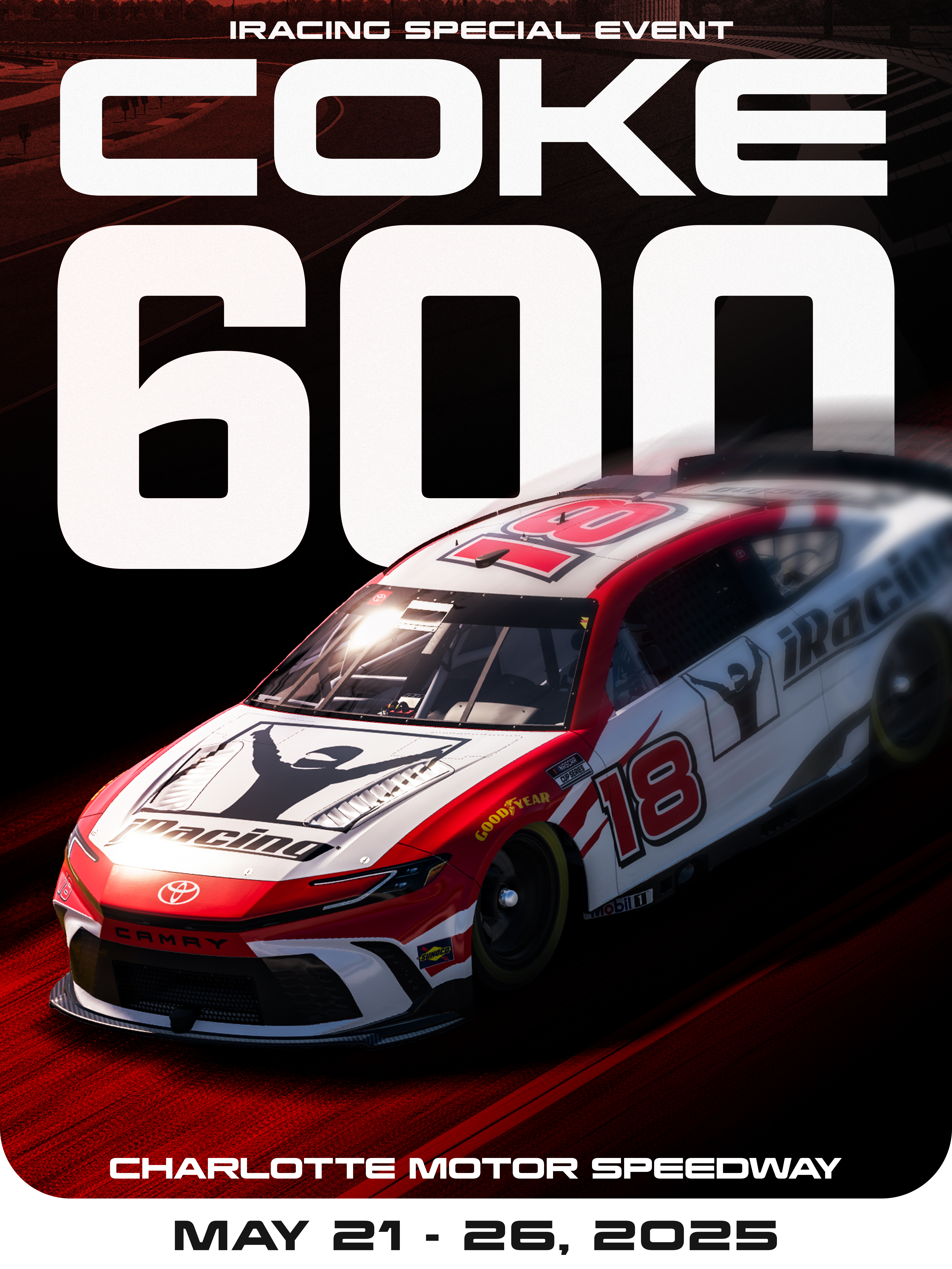 The final marquee motorsport event of Memorial Day weekend and a longtime Charlotte Motor Speedway tradition, the iRacing Coke 600 serves as part of the NASCAR iRacing Series schedule. It’s the second of four full-length events in the championship, which mirrors the real-world NASCAR Cup Series campaign with 36 events throughout the year.