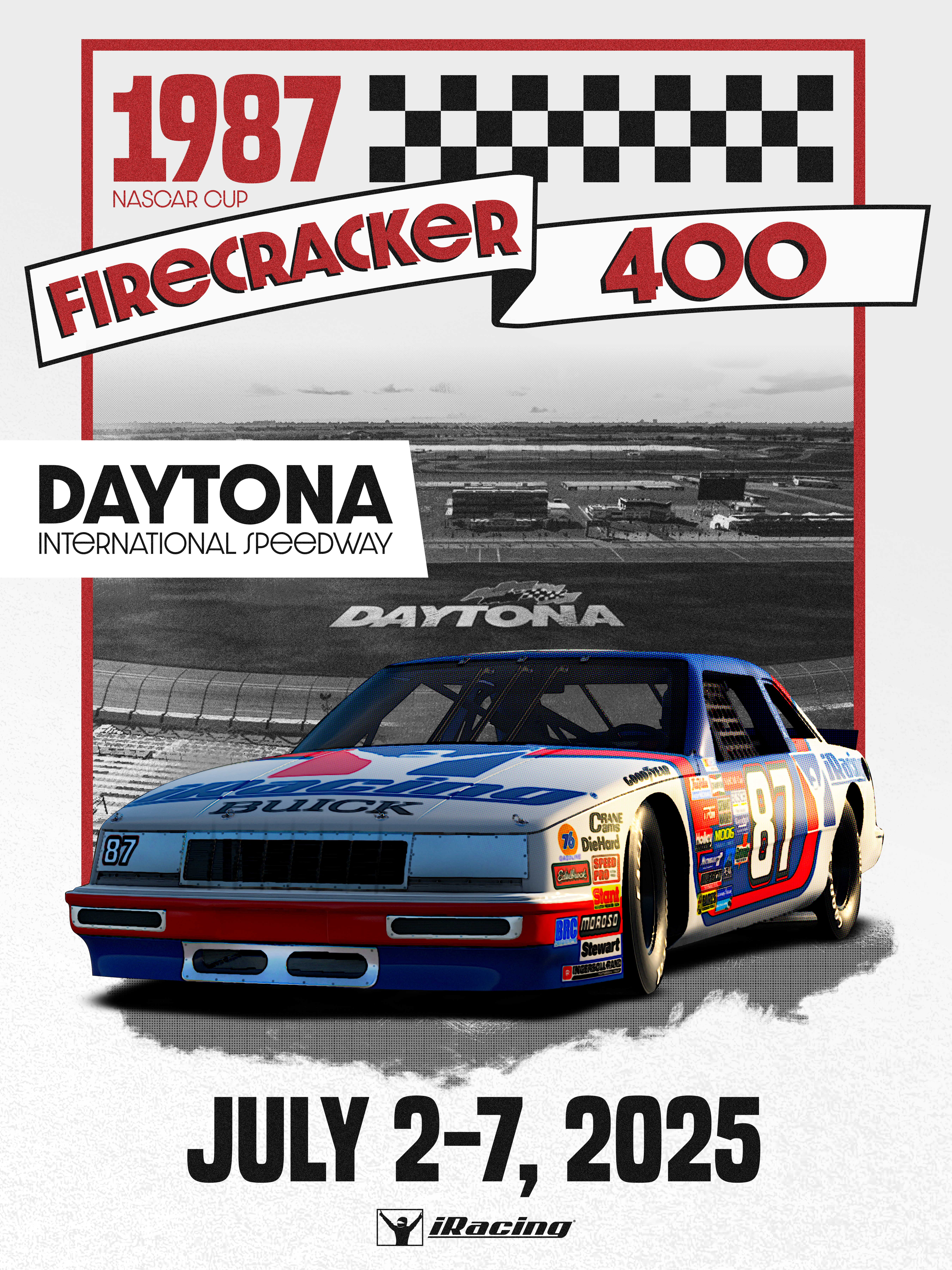 The Firecracker 400 was a NASCAR Winston Cup Series racing event that took place at Daytona International Speedway. Take a step back in time to feel what it was like to race in this Legendary event with the Historic 1987 NASCAR Cup Cars.