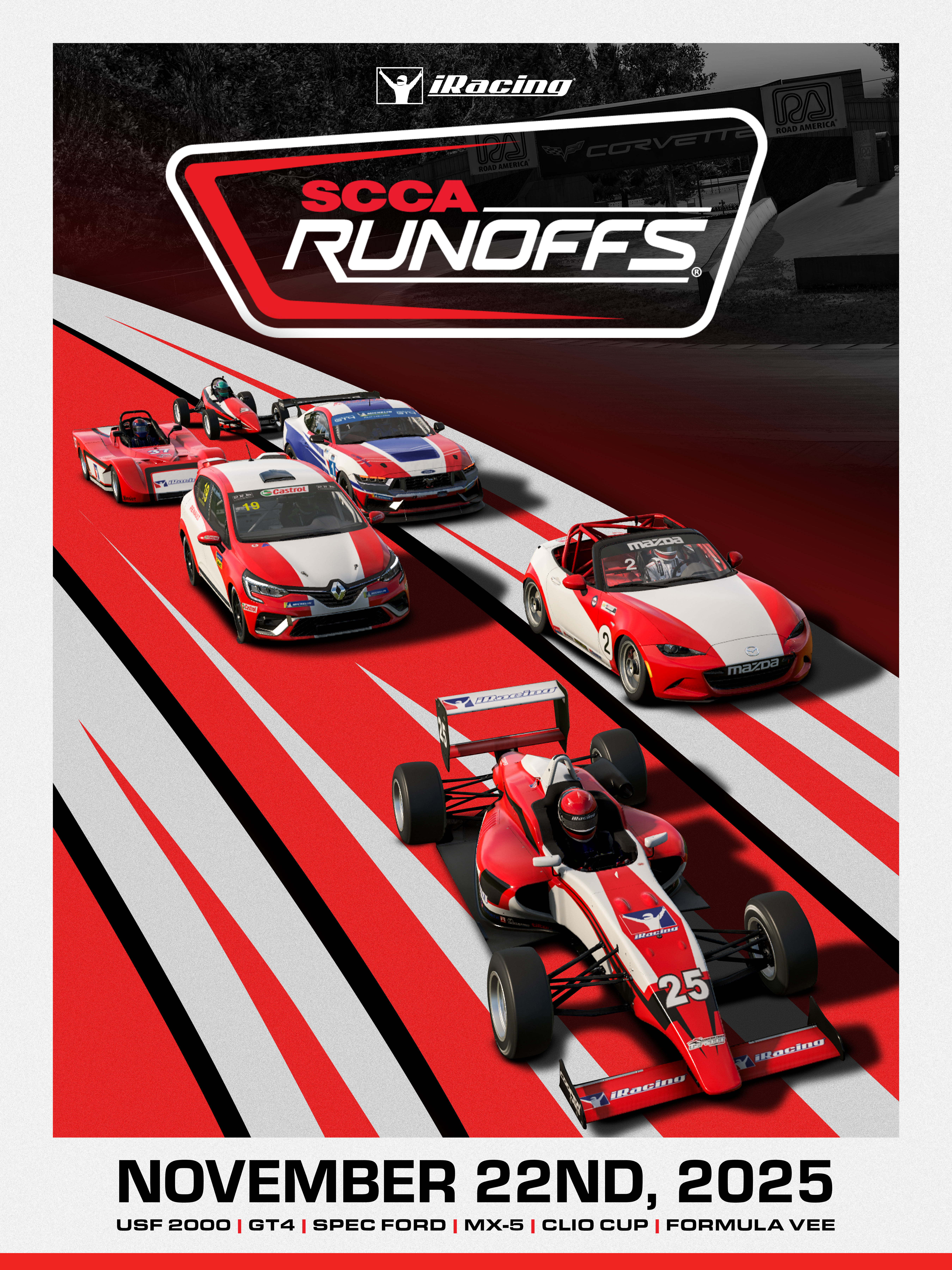 The SCCA National Championship Runoffs is the end-of-year championship meeting for Sports Car Club of America Club Racing competitors. Take part in one of the many car classes in a week long qualification and super session format.